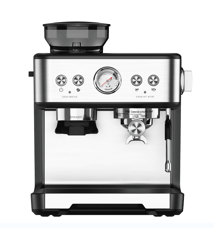 SKU: PSCM7060 coffee grinding machine. 20Bar extraction cappuccino / American Italian espresso, 1 cup / 2 cups mechanical button + instrument number, 2300W, steam type, powder hammer 58mm, 30 level grinding setting