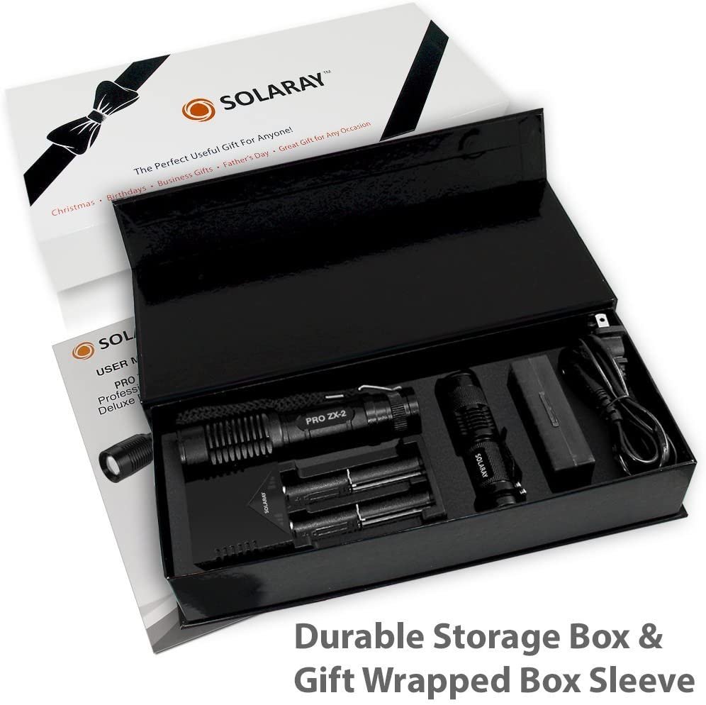 • Solaray’s exclusive memory light mode circuit adds to the many features of the Pro ZX-2. It also features a versatile, easily adjustable zoom focus lens for close up and long-distance lighting. Operates with a long lasting Solaray rechargeable 18650 lithium-ion or AAA alkaline batteries
