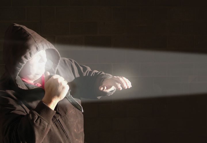 How the strobe light works. Shine the flashlight beam into the criminal’s eyes and for a moment, he can’t see because it shocks his vision. Strobbing bright light forces the brain to complete partial images created by the momentary exposure to the strobe.